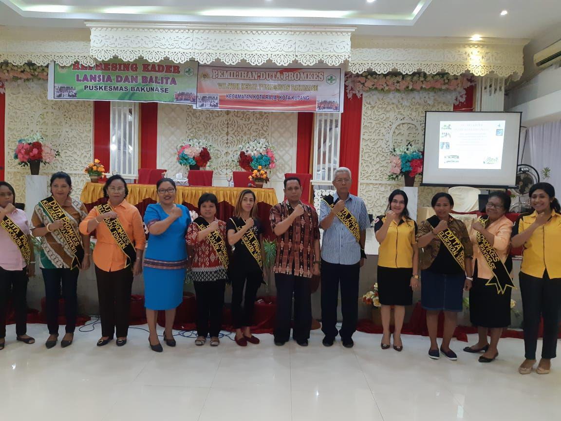 Kegiatan pemilihan duta promkes dirangkaikan bersama kegiatan refresing kader lansia dan kader. Dalam menggelar kegiatan ini, Puskesmas Bakunase Melibatkan tim promosi kesehatan Dinas Kesehatan Kota Kupang, Camat Kota Radja, dan para kader lansia dan Balita di wilayah kerja Puskesmas Bakunase .